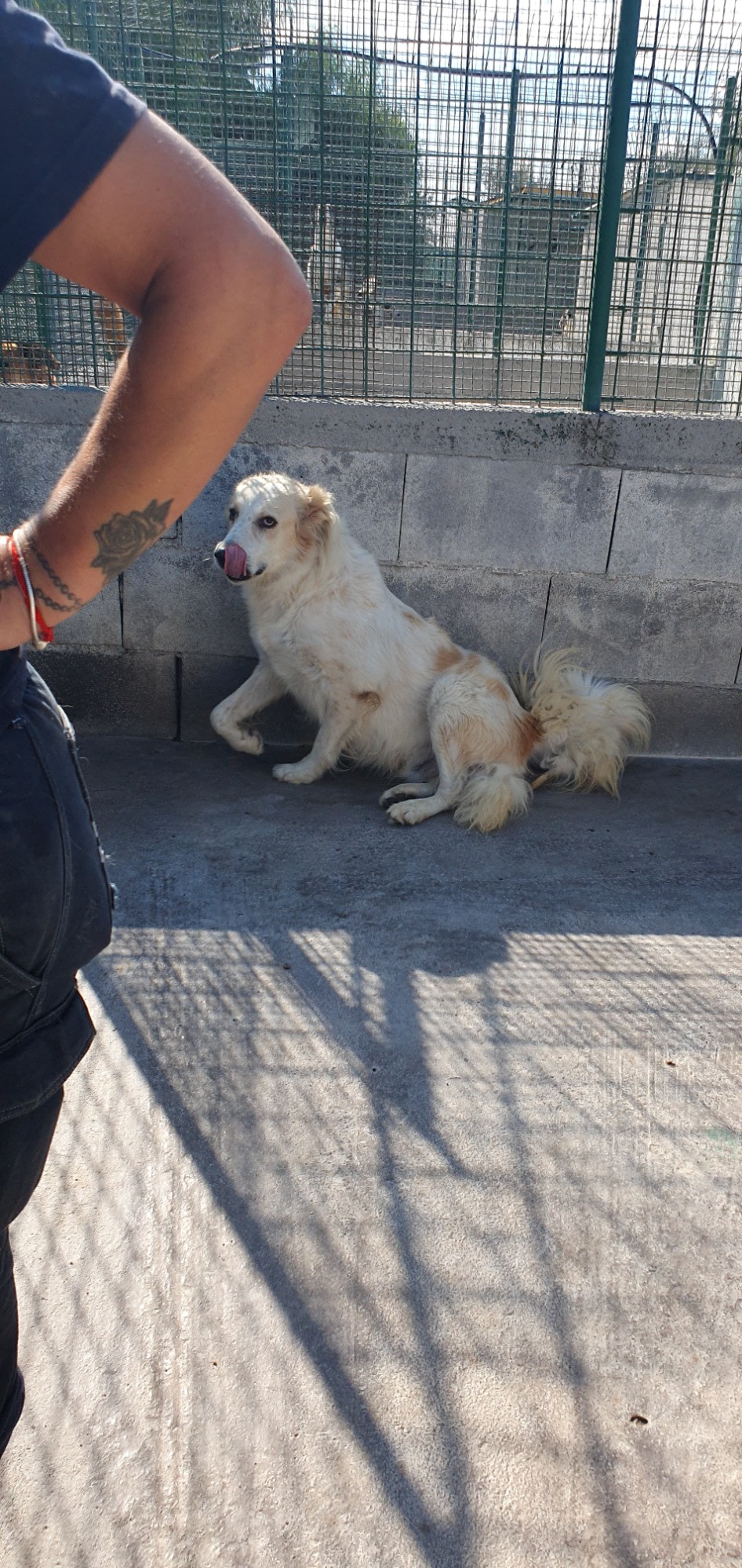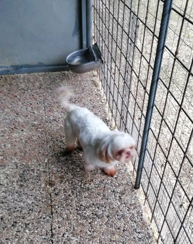 Der arme kleine Junge wurde ausgesetzt, denn die Besitzer wollten ihn nicht mehr haben. Er lebte für eine Weile im Dorf und wurde von den Besitzern einer Bar gefüttert. Von dort wurde er vertrieben und kam dann ins Canile.