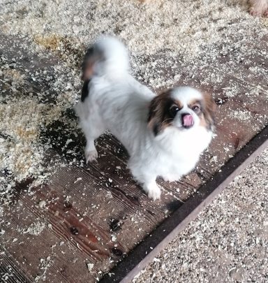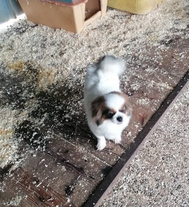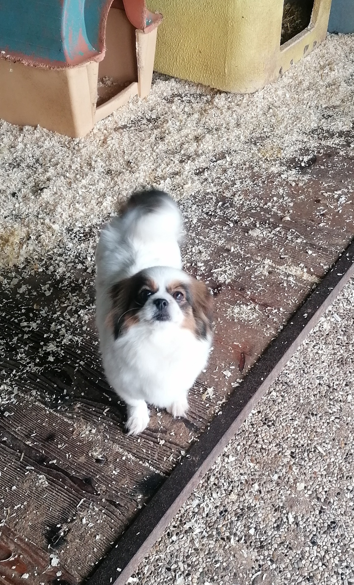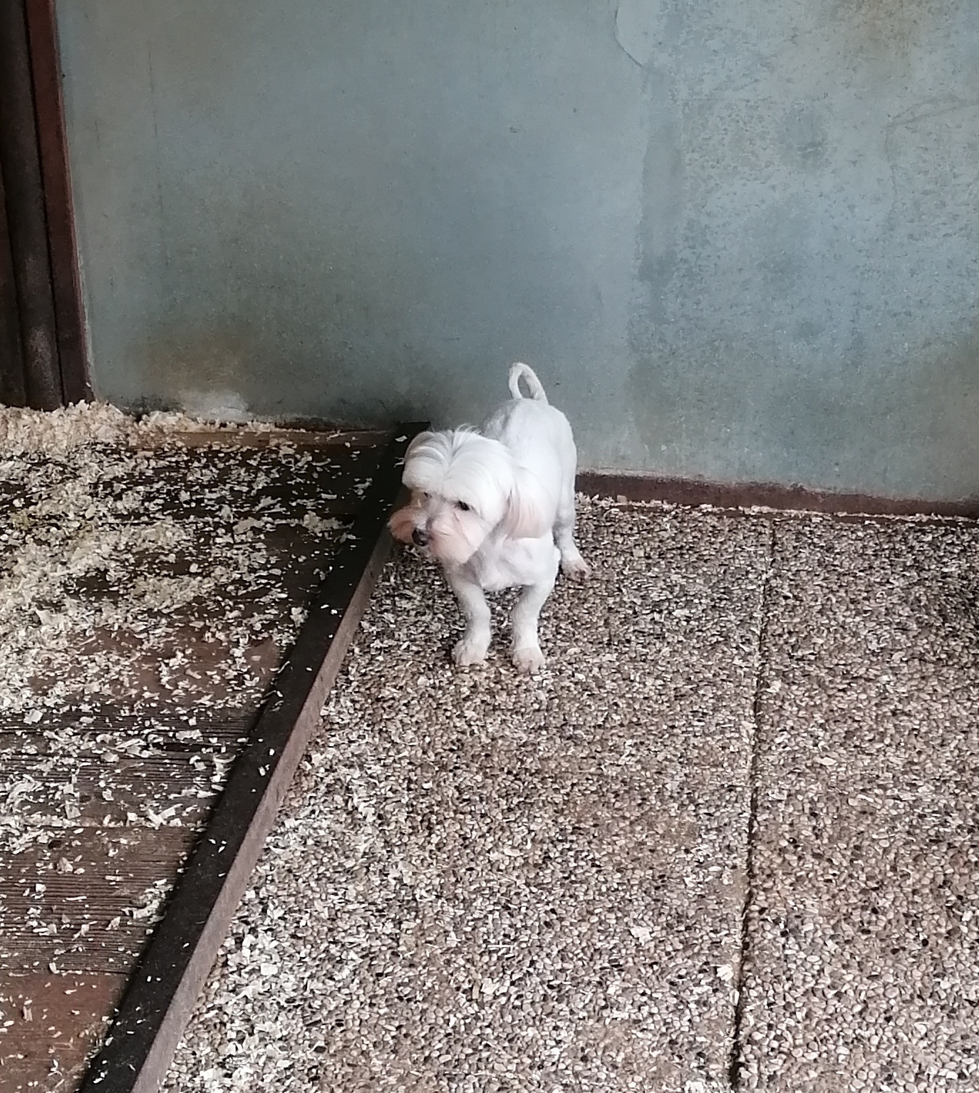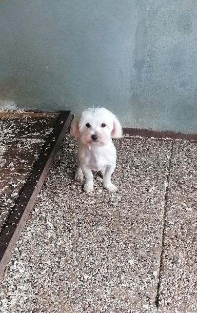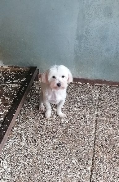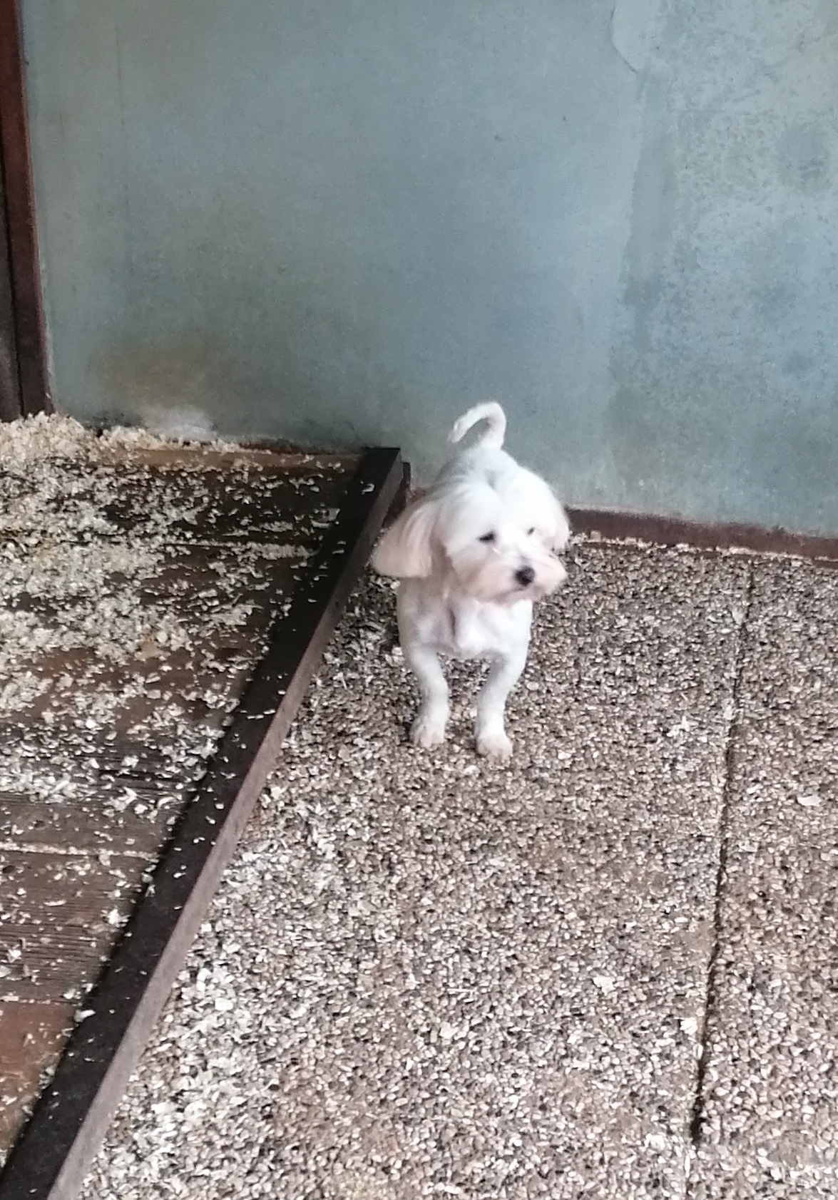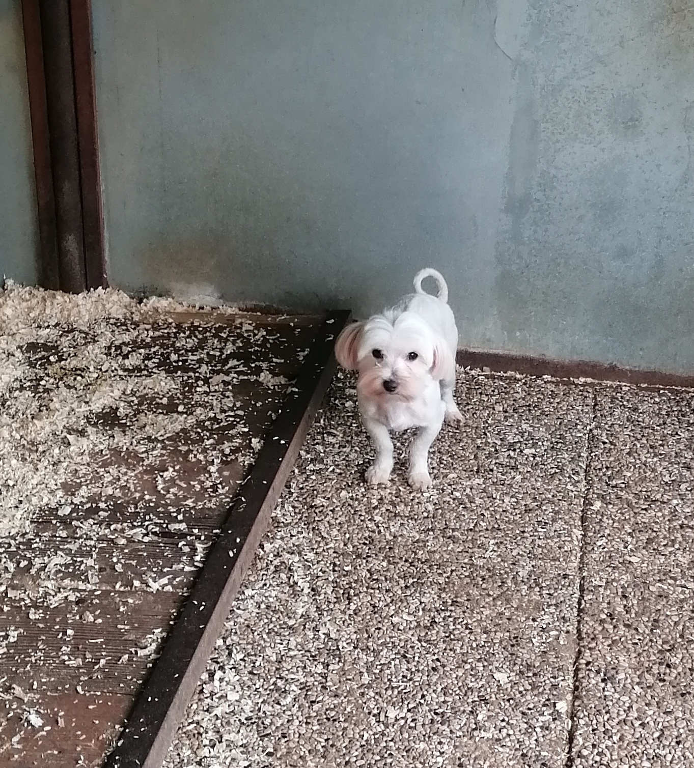 Eine klitzkleine Maus, 5 kg und 26 cm Schulterhöhe, die leider ihre Besitzerin verloren hat und nun ganz allein auf der Welt ist. Leider ist sie trotzdem nicht stubenrein und geht nicht an der Leine, denn sie lebte bis vor kurzem in einem Lanhaus, wo sie freien Zugang nach draussen hatte und somit ganz nach Lust und Liebe raus und rein ging und ihr Geschäft draussen verrichtete.